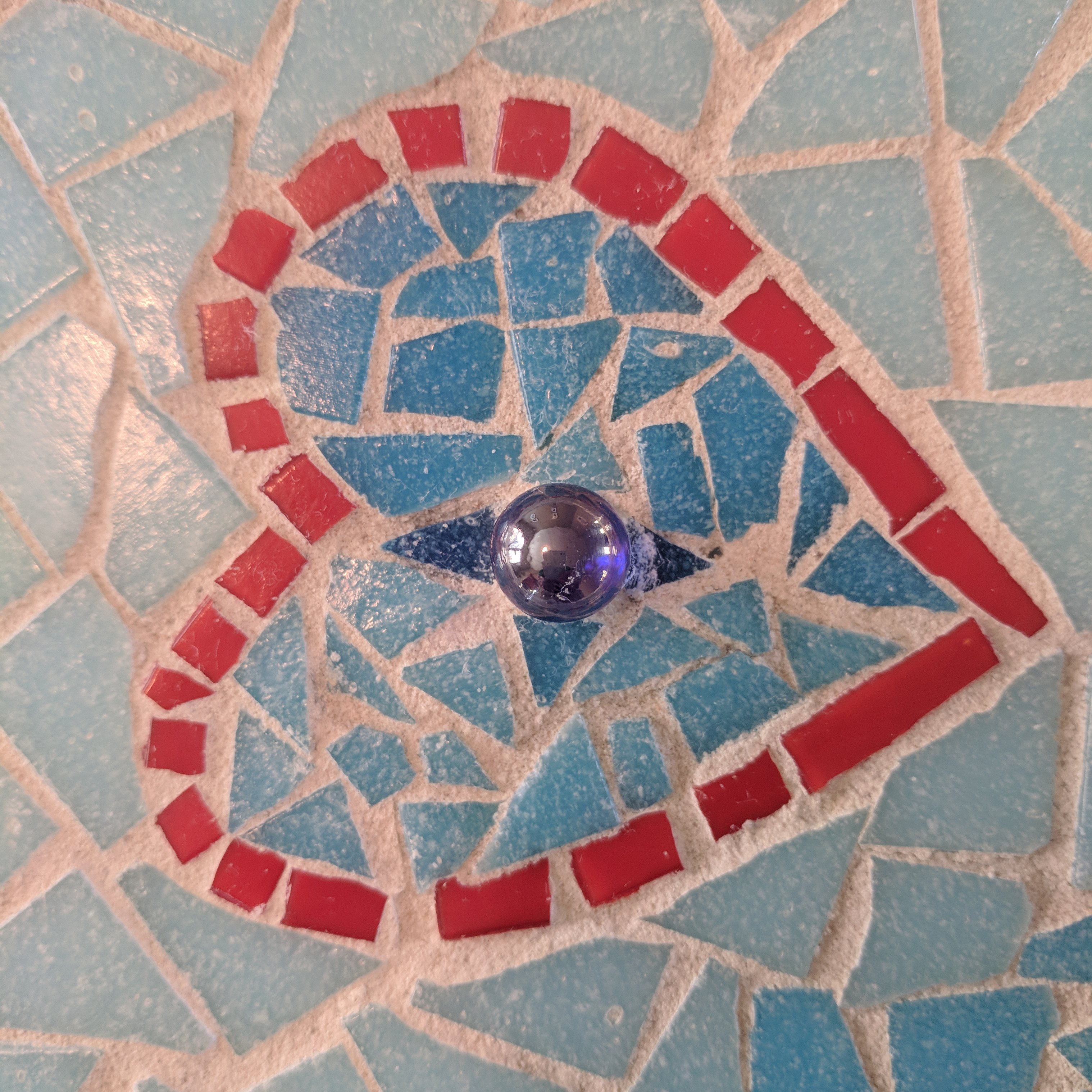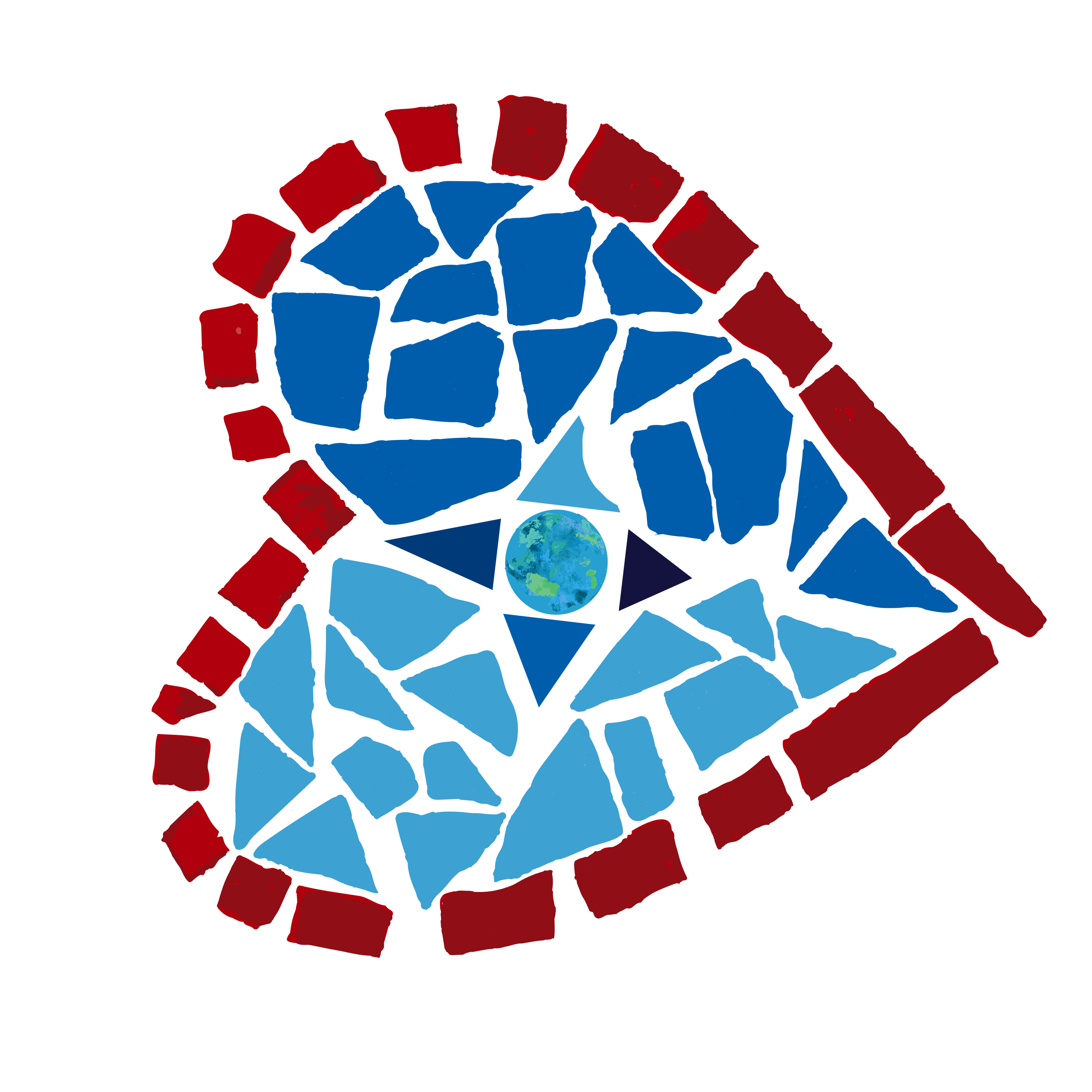 I started with the heart (see below, middle-right). I rotated it 90 degrees, filled it with blue sky and blue sea, added the four points of the compass, and a marble representing the earth in the middle. It’s hanging in my office.